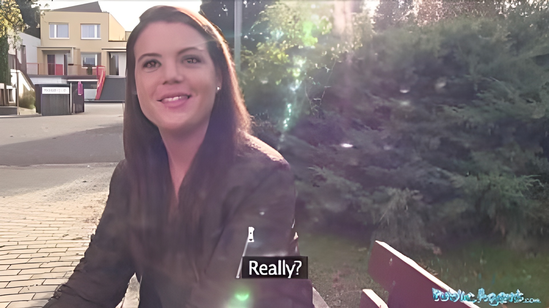 Outdoor sexy student gets creampie by public agent