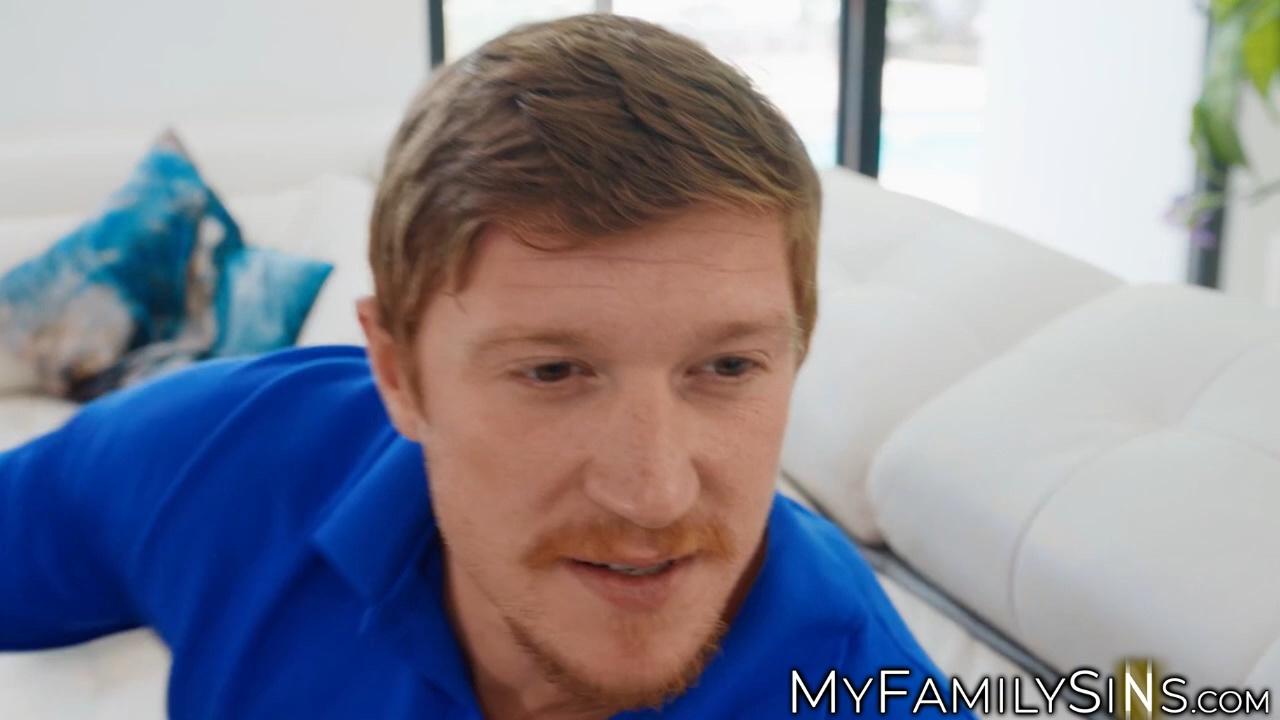 Nia Bleu, the busty and tattooed ebony MILF, deepthroats her husband's massive cock while her husband watches. Sarai Minx, a gorgeous redhead with massive boobs, joins in for a threesome. They take turns riding and fucking each other hard, culminating in a group climax with a creampie for both.