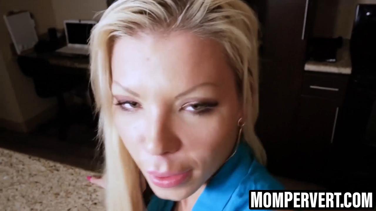 In this POV scene, a gorgeous blonde milf named Barbie Sins takes her boyfriend's thick cock in her petite, shaved pussy. She rides him hard in cowgirl position, bouncing on his lap with her big tits bouncing too. He blows his load all over her face in the end.